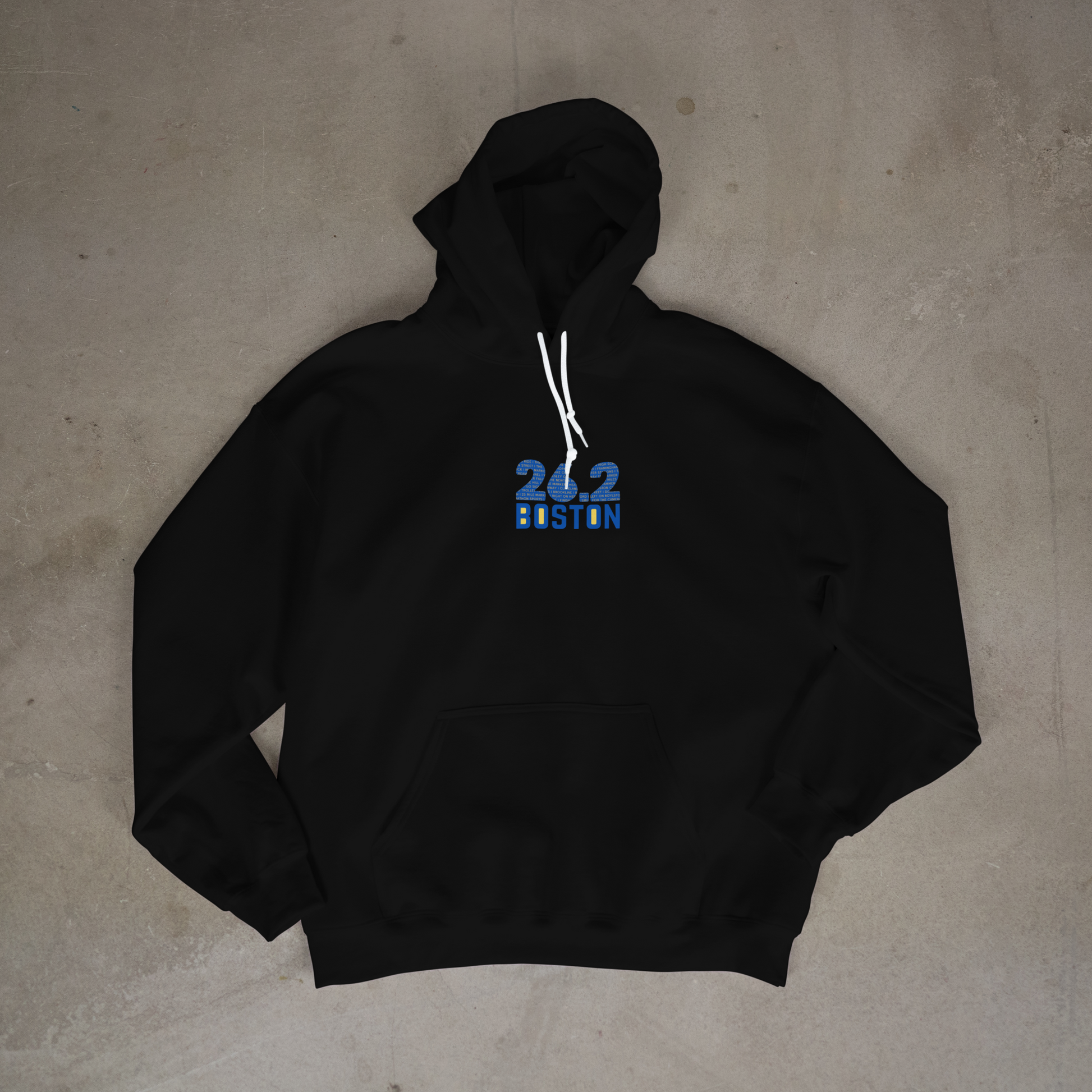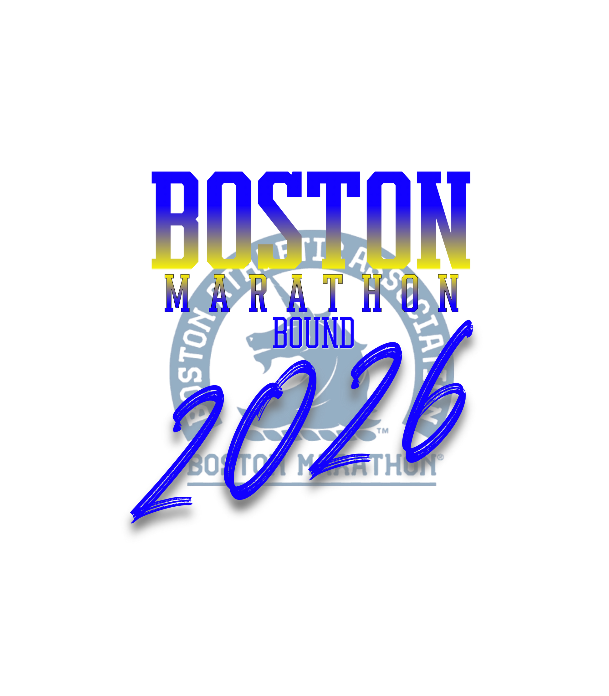 The design has a front and back graphics. Consisting of the "26.2 Boston" (Signifying the 26.2 miles of the course) on the front, and a the "Boston Marathon Bound 2026" graphics on the back. Of course we had to make the design with the iconic Boston Strong blue and yellow colors.