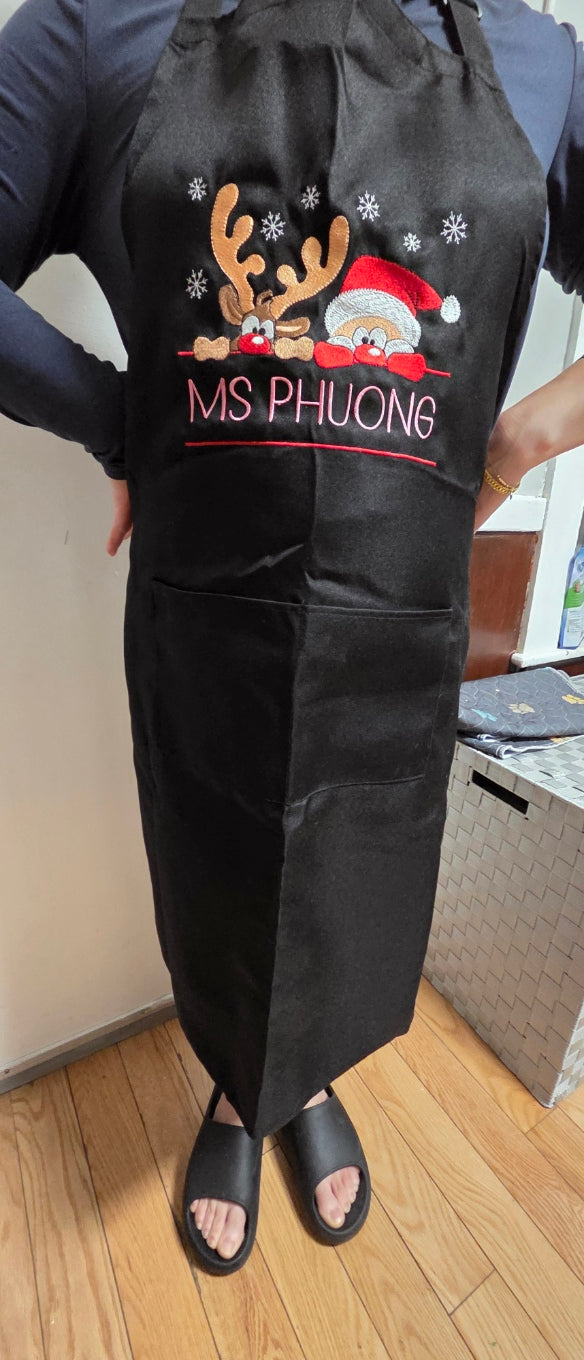 Embroidered Santa and Rudolph Apron