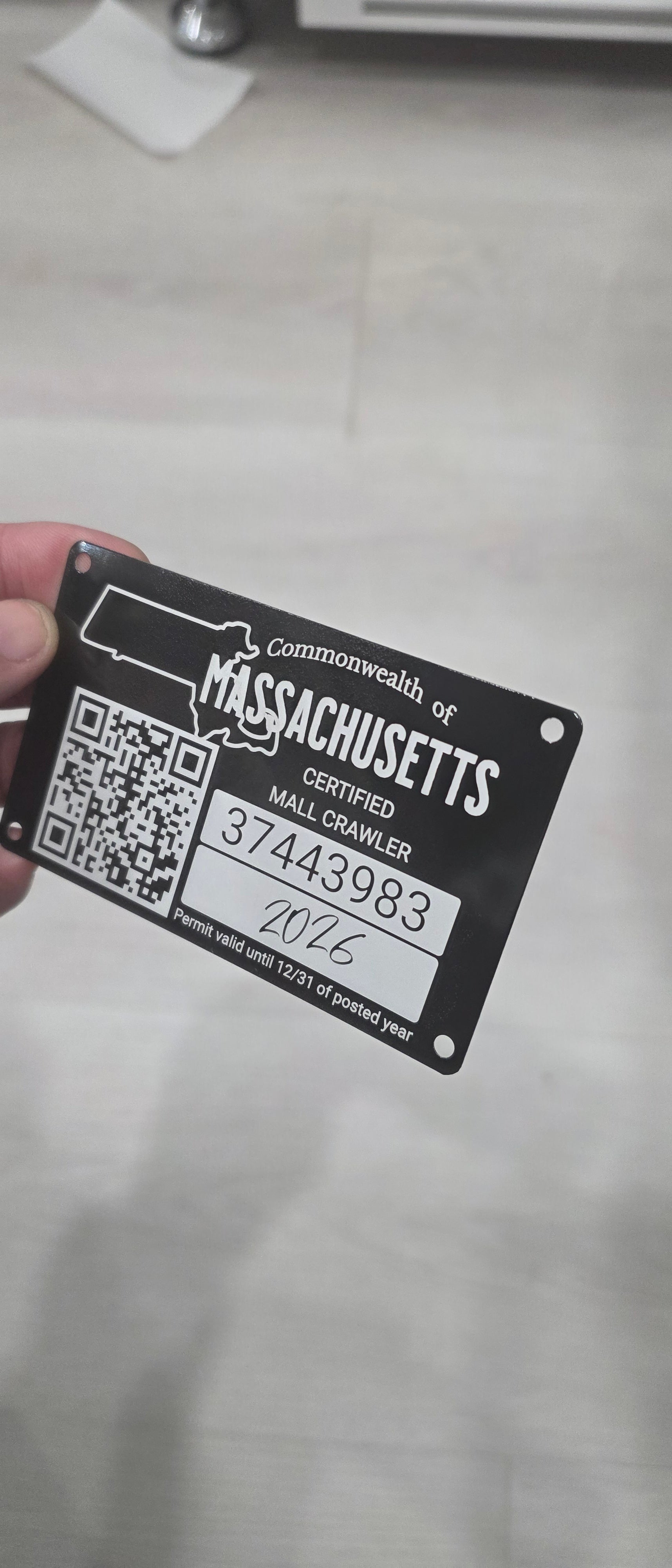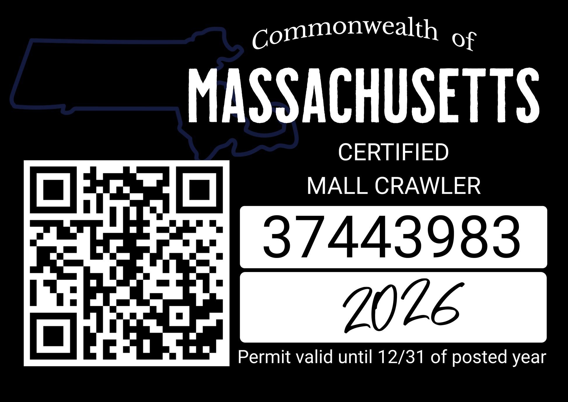 This badge is a satire design on a mall crawler certification. The type of certification can be customized to say something else like "Trail inspector", "Rock Crawler" etc. The state certification can also be changed to any state you'd like too. Reach out to us via our CONTACT US page for custom design(s).