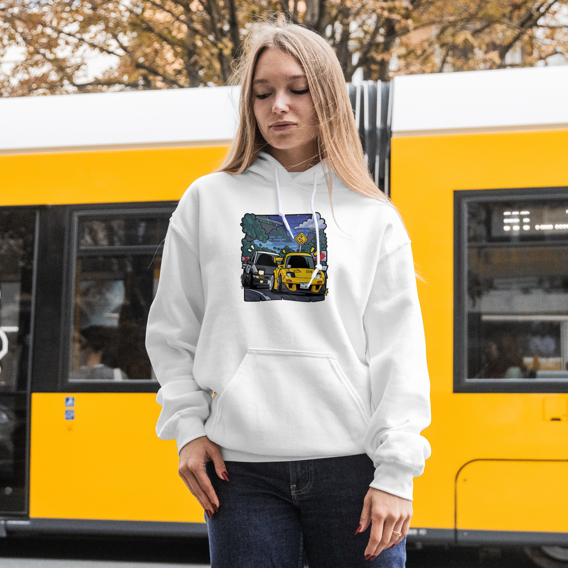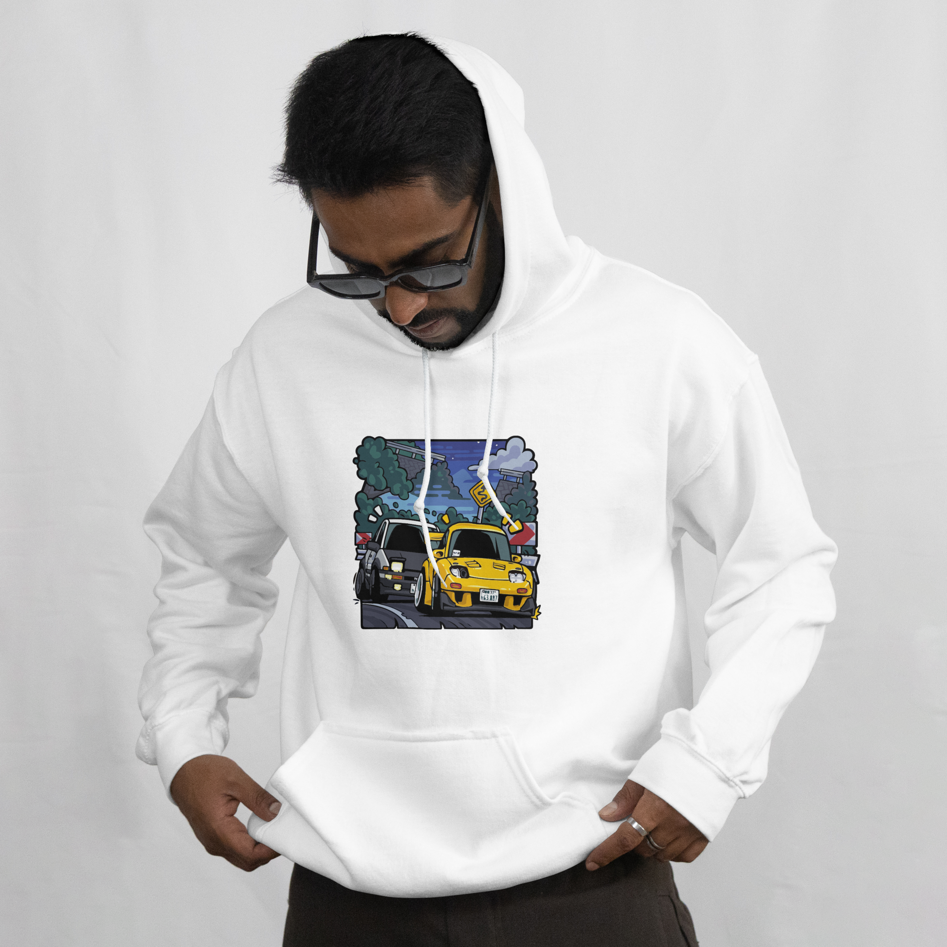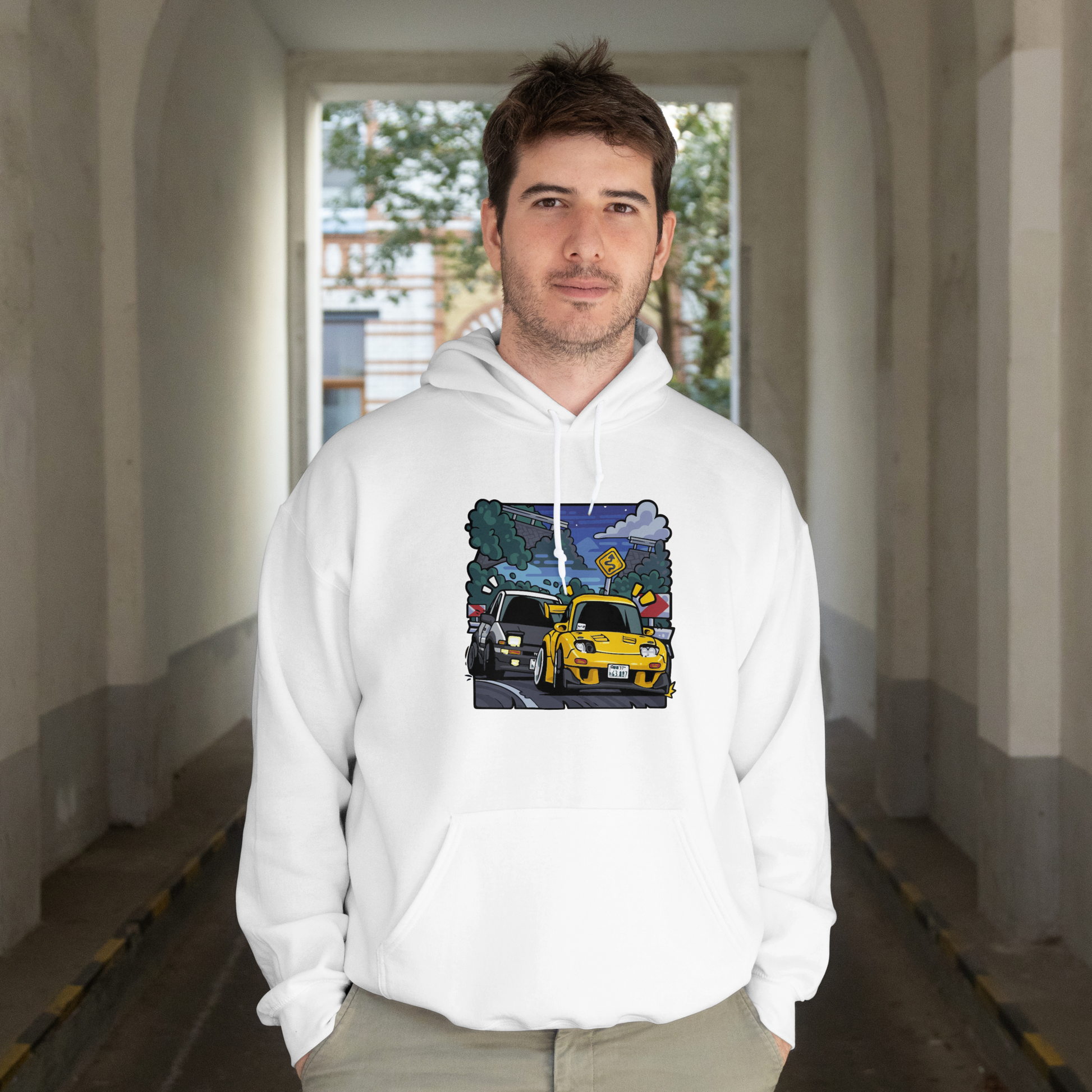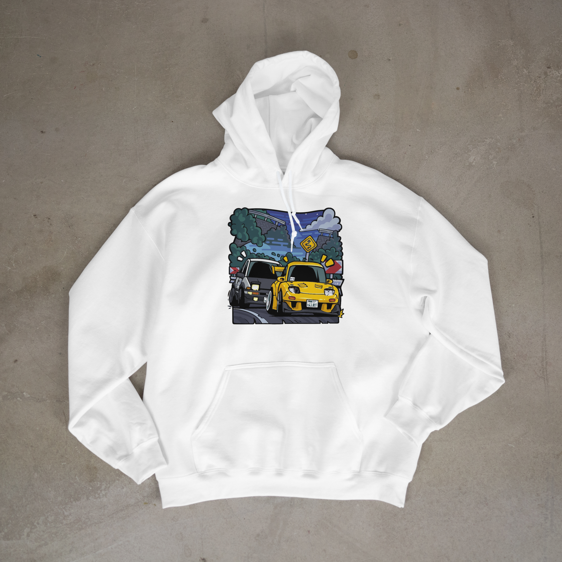 Toon style image of the iconic battle between Takumi and Keisuke!